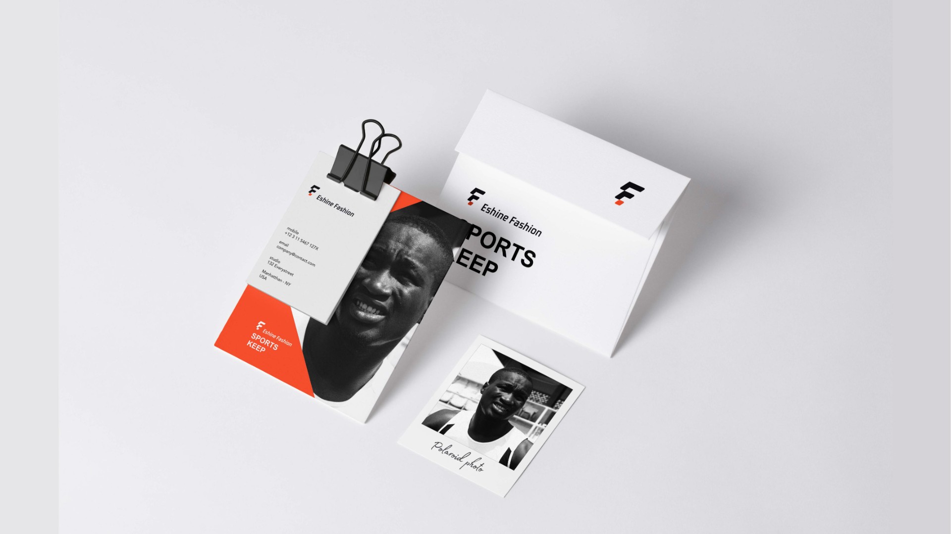 以企业英文首字母"EF”为创意出发点,采用方形表示透气孔,寓意服装舒适透气。采用15 度倾斜角设计,体现出运动的动感,选用黑色和橙色两种颜色彰显企业高级时尚。