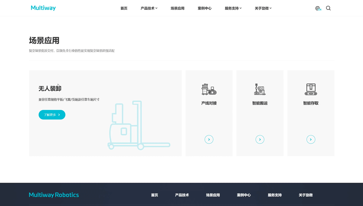 劢微是一家领先的场内智能物流解决方案提供商。专注于先进的机器人与人工智能技术,为客户提供完整的智能制造及智慧物流解决方案。已在工厂、仓储、物流等领域交付了大量标杆项目,成为行业领先客户信赖的合作伙伴。